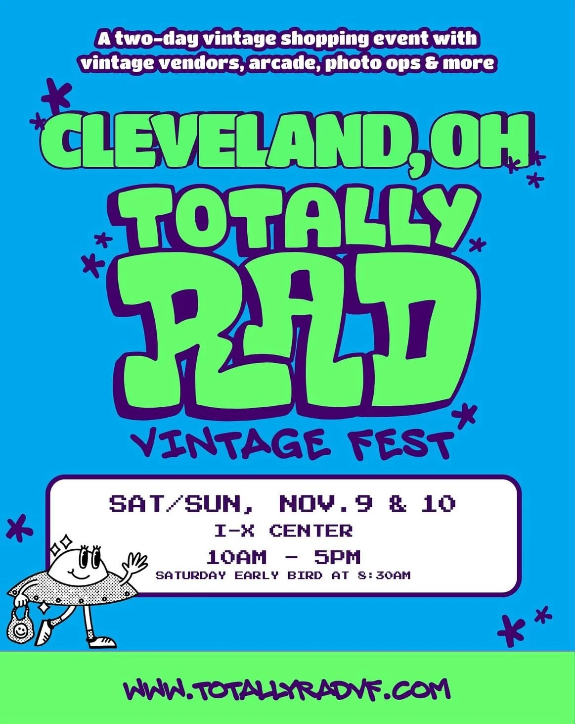 Upcoming events.. Oct 4 Totally Rad Knoxville Saturday, October 4, 2025 8:30 AM 5:00 PM World’s Fair Exhibition Hall (map) Google Calendar ICS View Event → Sep 27 Totally Rad New Orleans Saturday, September 27, 2025 8:30 AM 5:00 PM Pontchartrain convention & civic center (map) Google Calendar ICS View Event → Sep 20 Totally Rad Memphis Saturday, September 20, 2025 8:30 AM 5:00 PM Argicenter international (map) Google Calendar ICS View Event → Sep 13 Totally Rad Tampa Saturday, September 13, 2025 8:30 AM 5:00 PM Florida state fairgrounds special events center (map) Google Calendar ICS View Event → Aug 16 Totally Rad Atlanta Saturday, August 16, 2025 8:30 AM 5:00 PM Atlanta Expo Center South (map) Google Calendar ICS View Event → Aug 2 Totally Rad Alabama Saturday, August 2, 2025 10:00 AM 5:00 PM Birmingham Jefferson convention complex (map) Google Calendar ICS View Event → Jul 19 Iowa Vintage Fest Saturday, July 19, 2025 11:00 AM 7:00 PM The River Center (map) Google Calendar ICS View Event → Jul 12 Totally Rad Saturday, July 12, 2025 10:00 AM 5:00 PM Surly Festival Field (map) Google Calendar ICS View Event → Jun 29 Wisconsin Vintage Fest Sunday, June 29, 2025 11:00 AM 5:00 PM Harley-Davidson Museum (map) Google Calendar ICS View Event → Jun 21 Missouri Vintage Fest Saturday, June 21, 2025 3:00 PM 9:00 PM Schlafly Bottleworks (map) Google Calendar ICS View Event → Nov 9 to Nov 10 Totally Rad Vintage Fest Sat, Nov 9, 2024 10:00 AM Sun, Nov 10, 2024 5:00 PM I-X Center (map) Google Calendar ICS 📍 I-X Center View Event → Oct 18 to Oct 20 Chicago Vintage Festival Fri, Oct 18, 2024 2:00 PM Sun, Oct 20, 2024 6:00 PM Google Calendar ICS 📍 18th and Blue Island View Event → Oct 16 DAB Fall Flea Wednesday, October 16, 2024 1:00 PM 5:00 PM 2325 North Seminary Avenue Chicago, IL, 60657 United States (map) Google Calendar ICS View Event → Oct 13 217 Flea Sunday, October 13, 2024 12:00 PM 6:00 PM Google Calendar ICS 📍Joe's Brewery, Chaimpaign IL View Event →