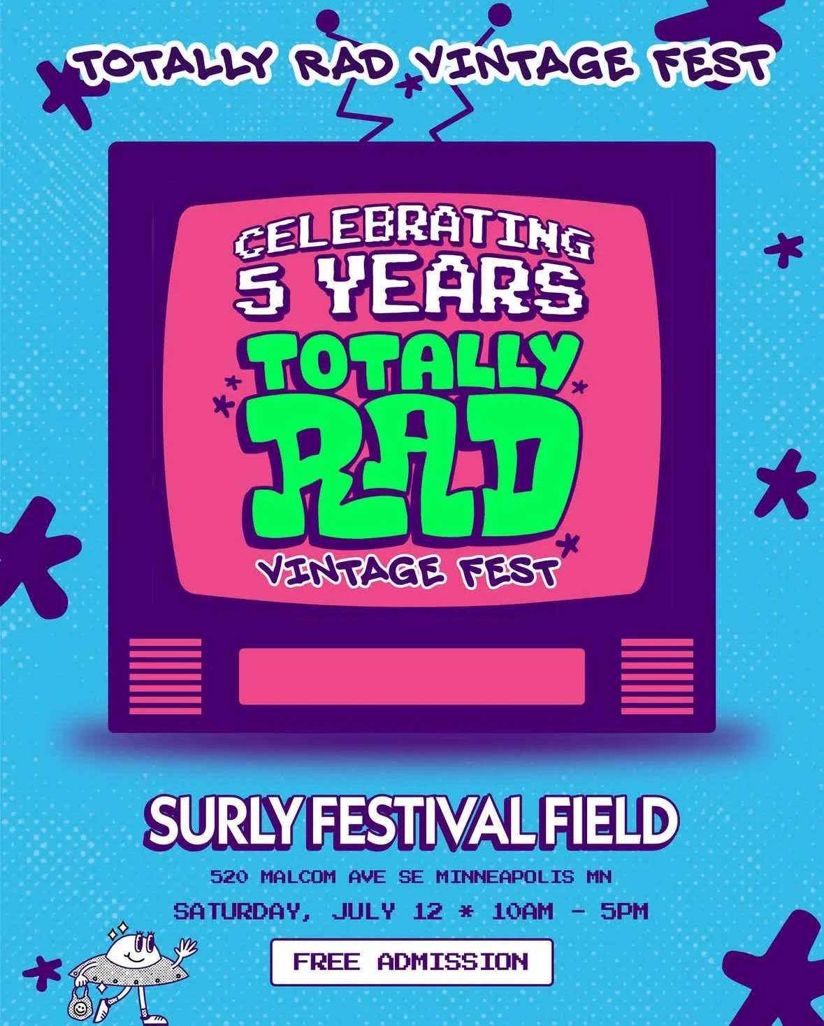 Jul 12 Totally Rad Saturday, July 12, 2025 10:00 AM 5:00 PM Surly Festival Field (map) Google Calendar ICS View Event →